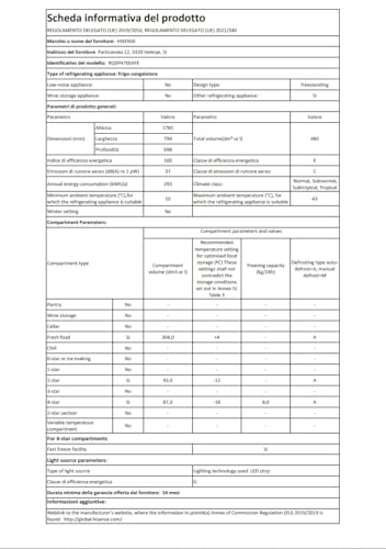 - Classe di efficienza energetica (F) non al top