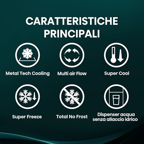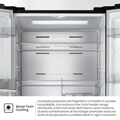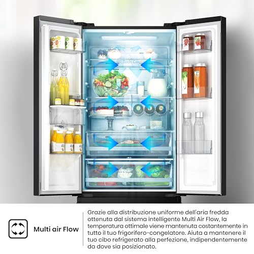 L'Hisense RF632N4WFE1 è equipaggiato con tecnologia Total No Frost, che previene la formazione di ghiaccio e brina sia nel frigo che nel congelatore, eliminando per sempre la noia dello sbrinamento manuale. Il sistema di raffreddamento Multi Air Flow assicura una distribuzione uniforme dell'aria fredda in ogni angolo, mantenendo una temperatura costante e aiutando a ripristinarla rapidamente dopo ogni apertura.