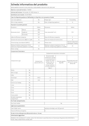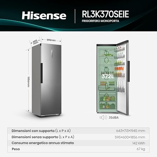 Dal punto di vista dell'efficienza energetica, l'Hisense RL3K3K370SEIE si posiziona in Classe E secondo la nuova etichettatura europea. Sebbene non sia la classe più alta disponibile, il consumo energetico annuo dichiarato è di 142 kWh, un valore comunque contenuto considerando la grande capacità del frigorifero. La tecnologia Inverter del compressore contribuisce a ottimizzare i consumi, regolando la potenza in base alle reali necessità e riducendo gli sprechi.