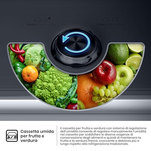 Una menzione speciale va al cassetto 0° Fresh Box, una zona a temperatura controllata vicina allo zero, pensata appositamente per la conservazione ottimale di alimenti delicati come carne e pesce. Questa funzione aiuta a mantenere la freschezza e le proprietà nutritive degli alimenti più a lungo, riducendo gli sprechi.