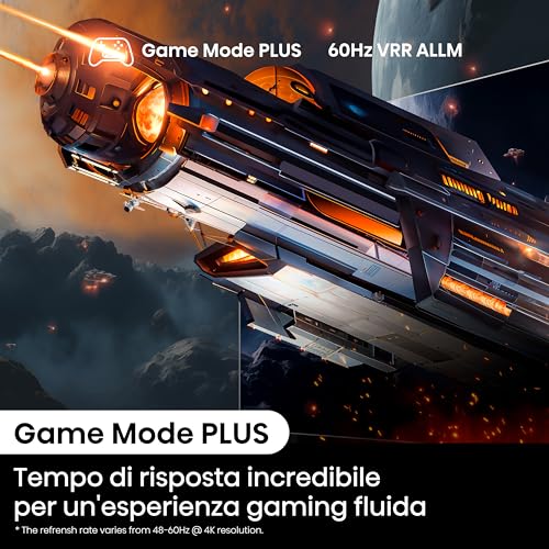 E per i videogiocatori? Hisense ha pensato anche a loro con il Game Mode Plus. Questa modalità ottimizza le prestazioni del TV per il gioco, riducendo l'input lag grazie all'ALLM (Auto Low Latency Mode) e garantendo una maggiore fluidità con il VRR (Variable Refresh Rate) fino a 60Hz. Non è un TV pensato per il gaming competitivo ad altissimi frame rate, ma per il giocatore occasionale e per godersi le avventure su console di ultima generazione, offre un'esperienza decisamente piacevole e reattiva.