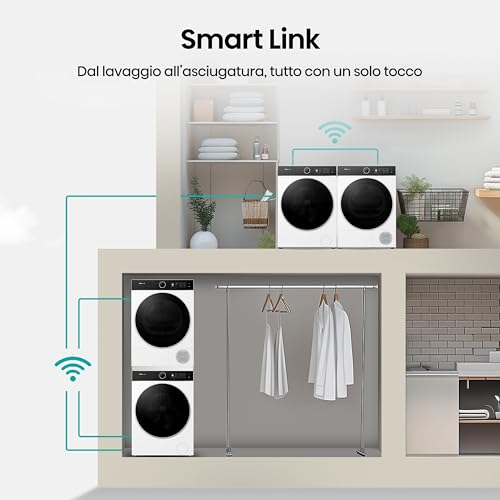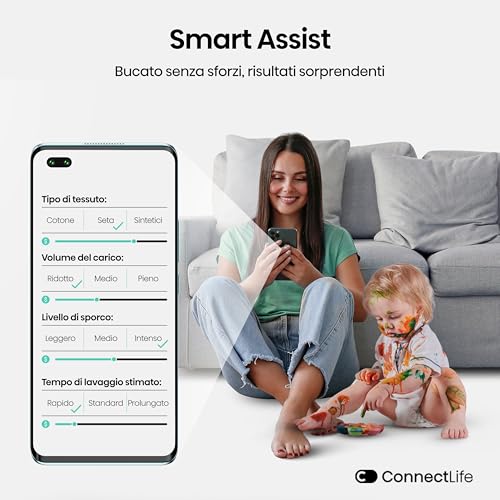 - Connettività Wi-Fi e App ConnectLife: Essendo una lavatrice smart, può essere controllata da remoto tramite l'app dedicata. Questo significa che puoi avviare, mettere in pausa o programmare un ciclo di lavaggio direttamente dal tuo smartphone, ovunque tu sia. L'app offre anche la possibilità di monitorare i consumi e ricevere notifiche, per una gestione completa e intelligente.
