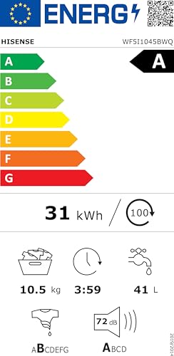- Motore Inverter e Silenziosità: Il motore Inverter garantisce non solo un'elevata efficienza energetica (Classe A) ma anche una notevole silenziosità, specialmente durante la centrifuga. Con un livello di rumore in centrifuga di 72 dB, si colloca in classe di rumorosità A, permettendoti di fare il bucato anche di notte senza disturbare.