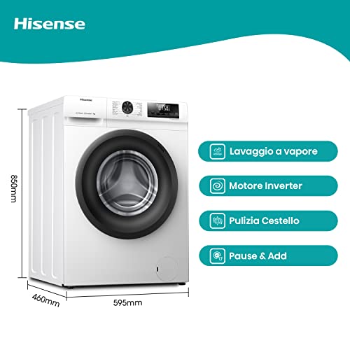 In conclusione, la Hisense WFQE7012EVM è una lavatrice slim che riesce a combinare in modo eccellente dimensioni compatte, buone prestazioni e un set di funzioni moderne. La capacità di 7 kg la rende adatta a nuclei familiari non troppo numerosi, mentre la profondità ridotta è un vero e proprio salvavita per chi ha poco spazio. I suoi punti di forza sono senza dubbio l'efficienza energetica (classe A), la silenziosità del motore Inverter e, soprattutto, la preziosa funzione vapore, che garantisce igiene e facilita la stiratura. Con 15 programmi a disposizione, si adatta a ogni esigenza di bucato. Se cercate un elettrodomestico affidabile, efficiente e che non occupi troppo spazio, questa lavatrice Hisense rappresenta una scelta molto valida e con un ottimo rapporto qualità-prezzo.