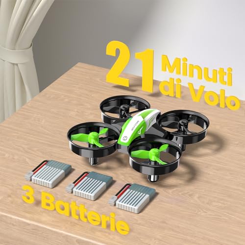 La dotazione di tre batterie è un punto a favore non da poco. Spesso, il limite più grande di questi mini droni è la scarsa autonomia. Avere due batterie di scorta pronte all'uso permette di prolungare il divertimento senza lunghe attese. Il drone stesso è incredibilmente piccolo e leggero, con un peso di appena 22 grammi. Le eliche sono protette da una gabbia in plastica integrata, una caratteristica fondamentale per la sicurezza, che protegge sia le eliche da urti contro muri e mobili, sia le dita degli utenti più curiosi. I materiali sono plastici ma danno una sensazione di buona durabilità, essenziale per un prodotto che subirà inevitabilmente qualche caduta.