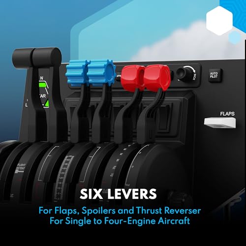 - Leve Configurabili: La possibilità di scambiare le manopole delle leve permette di adattare il quadrante a quasi ogni tipo di aereo, dal piccolo Cessna monomotore al Boeing 747 quadrimotore. È incluso anche un meccanismo per gli inversori di spinta sulle leve commerciali.
