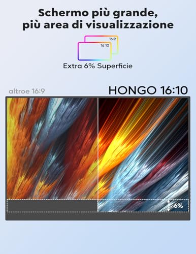 Il monitor portatile HONGO da 15,6 pollici è un prodotto che mantiene le sue promesse. È estremamente portatile, offre una qualità dell'immagine notevole per la sua categoria e vanta una connettività versatile e semplice grazie alla soluzione a cavo unico USB-C. La custodia che funge anche da stand è un tocco di praticità molto apprezzato. Sebbene gli altoparlanti integrati non siano eccezionali e la luminosità massima potrebbe non essere sufficiente per un uso ottimale sotto la luce diretta del sole, questi piccoli nei non intaccano il valore complessivo del prodotto. È la scelta ideale per professionisti in mobilità, studenti che necessitano di più spazio di lavoro e per chiunque voglia godersi i propri contenuti multimediali su uno schermo più grande, ovunque si trovi.