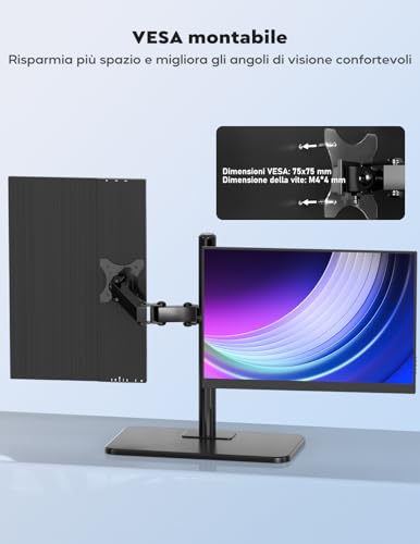 Il monitor può funzionare sia in modalità orizzontale (landscape) che verticale (portrait), adattandosi a diverse esigenze, come la lettura di documenti lunghi o la programmazione.