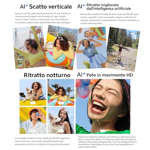 Il comparto fotografico è, senza dubbio, uno dei punti di forza di questo dispositivo. Il sensore principale è una impressionante unità da 200MP con apertura f/1.9 e stabilizzazione ottica (OIS). Questo sensore di grandi dimensioni (1/1.4") promette di catturare una quantità di luce eccezionale, garantendo scatti dettagliati e luminosi in ogni condizione.