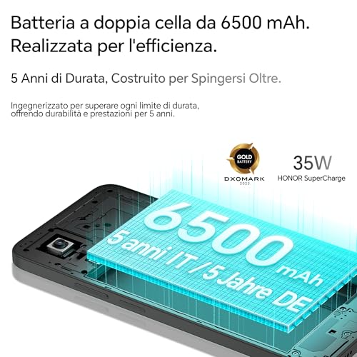 Il vero, indiscutibile punto di forza di questo smartphone è la batteria. Con una capacità monstre di 6500 mAh, l'HONOR 400 Smart è progettato per durare. Si tratta di una batteria a doppia cella che, secondo i test, garantisce un'autonomia eccezionale, capace di coprire fino a due giorni di utilizzo reale senza problemi. Questo lo rende il dispositivo ideale per chi è sempre in movimento e non vuole avere l'ansia da ricarica.