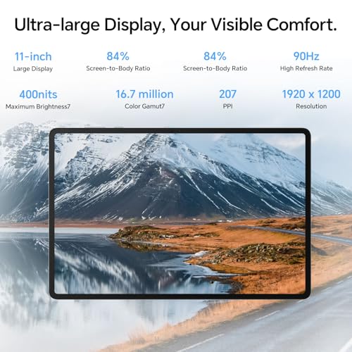 Il vero protagonista, però, è il display FullView da 11 pollici. Si tratta di un pannello IPS LCD con risoluzione Full HD+ (1920 x 1200 pixel) che, pur non avendo i contrasti assoluti di un OLED, offre una riproduzione dei colori fedele e piacevole. La vera chicca è la frequenza di aggiornamento a 90Hz, che rende lo scorrimento delle pagine web e l'interfaccia utente molto più fluidi e reattivi rispetto ai classici 60Hz. La luminosità massima di 400 nits è adeguata per l'uso in interni, anche se potrebbe risultare un po' limitata sotto la luce diretta del sole. Le cornici, pur presenti, sono simmetriche e non disturbano l'esperienza visiva, contribuendo a un buon rapporto schermo-corpo.