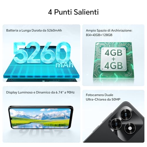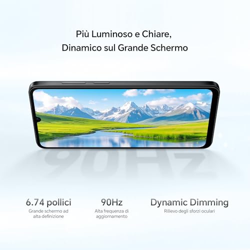Il protagonista della parte frontale è senza dubbio l'ampio display da 6,74 pollici. Si tratta di un pannello TFT LCD con risoluzione HD+ (720 x 1600 pixel). Certo, non è un AMOLED e la densità di pixel non fa gridare al miracolo, ma la vera chicca è la frequenza di aggiornamento a 90 Hz. Questa caratteristica, non sempre scontata in questa categoria, regala una fluidità decisamente superiore durante la navigazione web, lo scrolling sui social e in generale nell'interazione con l'interfaccia. L'esperienza d'uso quotidiana ne beneficia enormemente, risultando più scattante e piacevole. La luminosità è sufficiente per un utilizzo all'aperto, anche se sotto la luce diretta del sole si potrebbe desiderare qualcosa in più.