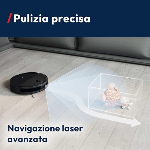 Uno dei punti di forza di questo modello è il sistema di navigazione Laser (LiDAR). Questa tecnologia permette al robot di scansionare l'ambiente circostante a 360 gradi, creando una mappa virtuale e dettagliata della casa. Questo si traduce in un percorso di pulizia logico e sistematico, a "serpentina", che evita di passare più volte sullo stesso punto e di tralasciare intere aree, un problema comune nei robot più economici dotati solo di sensori a infrarossi.