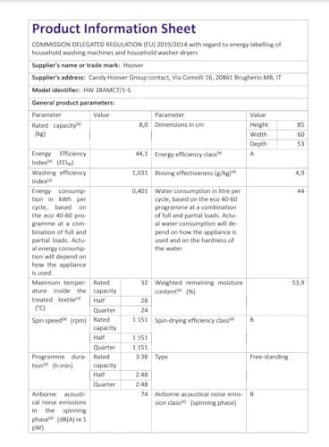 La Hoover H-WASH 500 si presenta sul mercato come una lavatrice moderna, pensata per chi cerca non solo pulizia impeccabile ma anche efficienza e tecnologia. Con una capacità di carico di 8 Kg e una centrifuga che arriva a 1200 giri/min, questo modello si adatta perfettamente alle esigenze di una famiglia media, permettendo di lavare carichi consistenti senza sprechi. Le sue dimensioni standard (85x60x53 cm) la rendono adatta alla maggior parte degli spazi domestici.