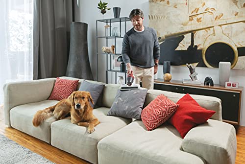 L'Hoover Ultra Vortex si presenta con un design compatto e moderno, nei colori rosso e bianco. Il peso di circa 2,3 kg lo rende abbastanza maneggevole per la pulizia di materassi e divani, anche se alcuni utenti lo percepiscono come un po' pesante per essere un aspiratore portatile. Il cavo di alimentazione lungo 5 metri offre una buona libertà di movimento, permettendo di raggiungere facilmente ogni angolo del letto o del divano senza dover cambiare continuamente presa.