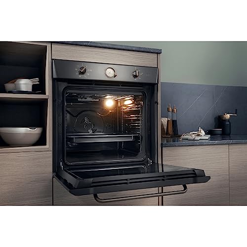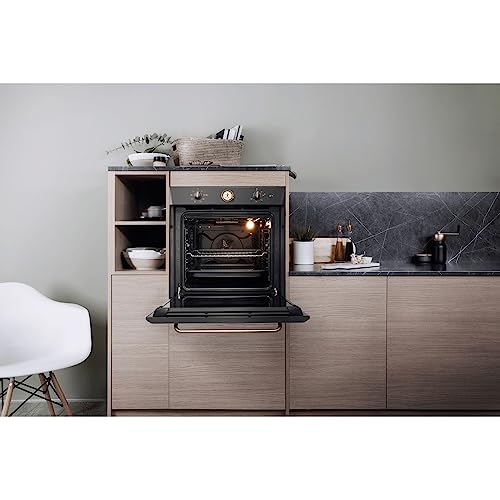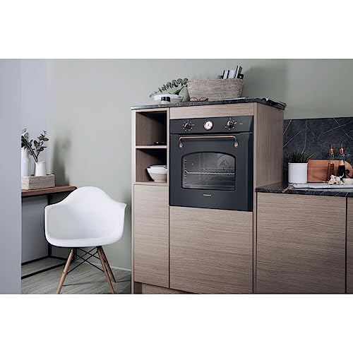 Il primo impatto con il forno Hotpoint FIT 804 H AN HA è senza dubbio legato al suo design. La linea "Tradizione" di Hotpoint punta su un'estetica rétro e ricercata, con una finitura color antracite e dettagli che richiamano lo stile classico, come le manopole e l'orologio analogico. Questa scelta lo rende perfetto per chi desidera arredare la propria cucina con un tocco di eleganza senza tempo, distinguendosi dai più comuni forni in acciaio inox. Nonostante l'aspetto vintage, le dimensioni sono standard (circa 60x60x56 cm), garantendo una facile installazione in qualsiasi cucina componibile.