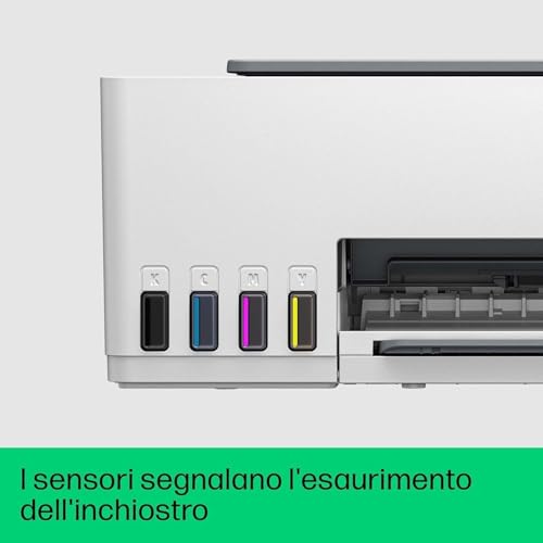 Il design è compatto e moderno, anche se interamente in plastica. Occupa poco spazio sulla scrivania e i serbatoi frontali trasparenti permettono di monitorare il livello dell'inchiostro a colpo d'occhio, un dettaglio piccolo ma incredibilmente utile. L'installazione è guidata passo-passo dall'applicazione HP Smart, disponibile per smartphone e computer, che rende il processo abbastanza semplice anche per i meno esperti, sebbene alcuni utenti segnalino la necessità di creare un account HP come un passaggio obbligato un po' fastidioso.
