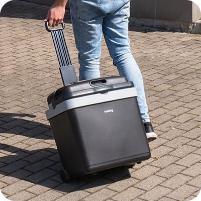 Appena tolto dalla scatola, l'Huslog Frigo Elettrico Portatile 33L si presenta come un prodotto solido e ben costruito. Le plastiche sono robuste e l'assemblaggio generale trasmette una buona sensazione di durabilità. Quello che colpisce subito, però, è l'attenzione alla portabilità: le due ruote integrate e il manico telescopico estraibile lo trasformano in un pratico trolley, un dettaglio non da poco quando si deve trasportare un frigo a pieno carico dal parcheggio alla spiaggia o alla piazzola del campeggio. Basta con il sollevamento di pesi inutili, una vera manna dal cielo per la schiena!