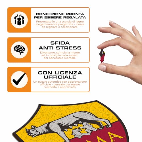 L'Iconic Puzzles - Roma è un prodotto con licenza ufficiale AS Roma. Questo significa che il design, i loghi e i colori sono stati approvati direttamente dalla società calcistica, garantendo un prodotto autentico e fedele all'immagine del club. Per un tifoso, questo è un dettaglio fondamentale, che trasforma il puzzle da semplice passatempo a vero e proprio oggetto da collezione, un modo per celebrare la propria passione. È il regalo perfetto per ogni tifoso giallorosso, un'idea originale che combina l'amore per la squadra con il piacere di un'attività rilassante e stimolante.