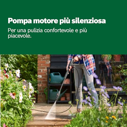 Un'altra differenza da non sottovalutare è la lunghezza del tubo ad alta pressione: 5 metri per il modello 125, 6 per il 130 e ben 7 metri per il 135. Un tubo più lungo significa maggiore libertà di movimento senza dover spostare continuamente il corpo macchina, un dettaglio che fa la differenza soprattutto in giardini grandi.