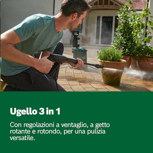 Passiamo all'azione! Uno dei punti di forza di tutta la serie è l'innovativo ugello 3-in-1. Questa soluzione permette di passare da un getto a ventaglio (per le pulizie generiche), a un getto rotante (per lo sporco più difficile) e a un getto puntiforme (per le incrostazioni) semplicemente ruotando la lancia. È una comodità incredibile che evita di dover cambiare continuamente ugello.