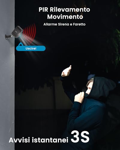 Dall'app è possibile personalizzare la sensibilità del sensore e persino impostare delle zone di rilevamento specifiche, per evitare che l'auto che passa in strada attivi continuamente la registrazione. Una funzione molto utile è la possibilità di attivare una sirena e un allarme luminoso direttamente dalla telecamera al rilevamento di un intruso, un deterrente efficace per spaventare i malintenzionati.