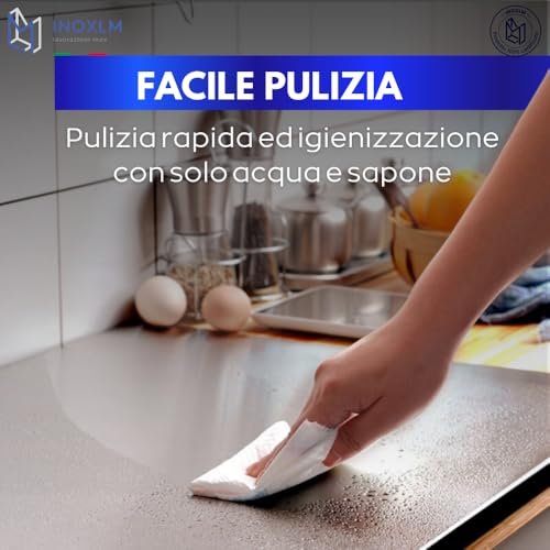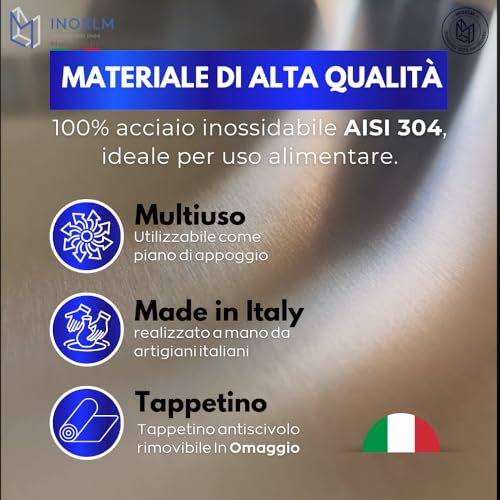 È importante sottolineare che i prodotti INOXLM sono progettati e realizzati interamente in Italia da artigiani esperti nella lavorazione dell'acciaio. Questa non è solo una garanzia di qualità dei materiali e delle finiture, ma anche un valore aggiunto che si percepisce nella cura dei dettagli e nella solidità del prodotto. L'azienda offre inoltre la possibilità di richiedere misure personalizzate, per adattare perfettamente la spianatoia ad ogni tipo di cucina.