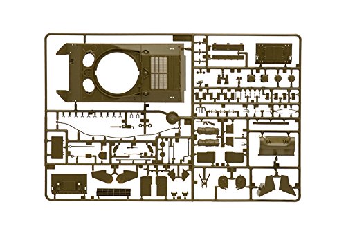 Aprendo la confezione, ci troviamo di fronte a un kit di buon livello, pensato per modellisti con un minimo di esperienza (livello di abilità 3 secondo Italeri). All'interno troviamo quattro stampate in plastica verde di buona qualità, uno scafo inferiore separato e, punto di forza del kit, due set di cingoli. Questi ultimi sono realizzati in un nuovo materiale plastico flessibile che può essere incollato e verniciato, una caratteristica molto apprezzata che facilita non poco il montaggio.