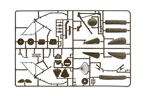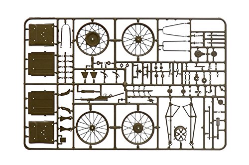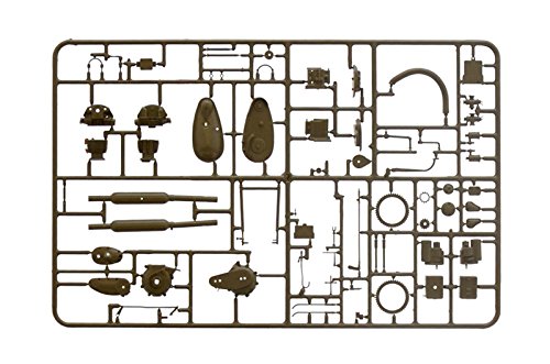 Aprendo la confezione dell'Italeri 7402, si viene accolti da una notevole quantità di pezzi, a testimonianza dell'alto livello di dettaglio del modello. Troverai diverse stampate in plastica di colore verde oliva, che contengono le parti del telaio, del motore, delle sospensioni e delle ruote. I dettagli sono sorprendentemente ben definiti per un kit di questa età, con poche sbavature o segni di stampaggio. La grande scala 1:9, inoltre, permette di apprezzare ogni singolo componente, rendendo il montaggio un'esperienza ancora più immersiva.