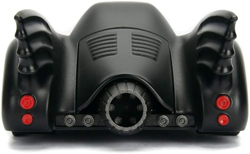 Esteticamente, la Batmobile di Jada Toys è una riproduzione fedele. La verniciatura nera opaca cattura bene l'aspetto del veicolo cinematografico e i dettagli non mancano: i piccoli loghi di Batman sui cerchioni, le prese d'aria e persino le porte del carburante color argento sono riprodotti con cura. Le ruote girano liberamente e gli pneumatici in gomma vera aggiungono un tocco di realismo in più.