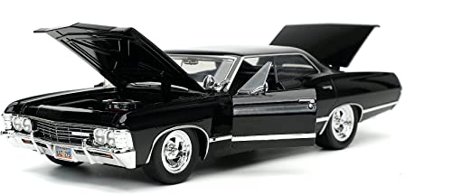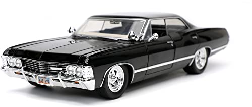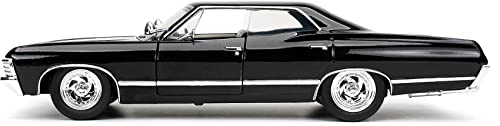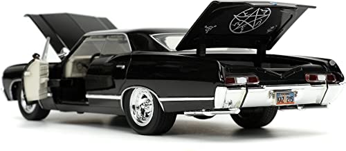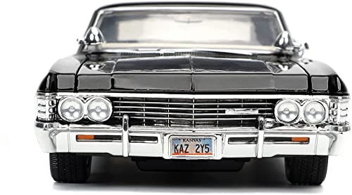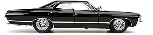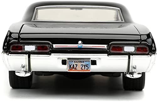 La vera magia di questo modellino risiede nei particolari. Jada Toys ha fatto un lavoro notevole nel replicare l'aspetto della vettura vista sullo schermo. La verniciatura nera lucida è impeccabile e dona all'Impala quell'aria minacciosa e affascinante che la contraddistingue. Le cromature, presenti su paraurti, cerchioni e finiture, sono brillanti e applicate con precisione, aggiungendo un tocco di realismo.