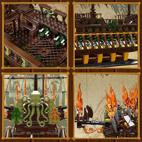 L'esperienza di costruzione è nel complesso molto piacevole e adatta a un pubblico adulto. Il design del modello, che si ispira a un vascello fantasma come l'Olandese Volante, è ricco di dettagli interessanti. La costruzione dello scafo è solida e gratificante. Tuttavia, alcuni passaggi possono risultare un po' più delicati. Ad esempio, alcune sezioni, come la prua o i cannoni interni, sono collegate al resto della struttura con un singolo "stud" (il bottoncino di incastro), rendendole un po' fragili durante la manipolazione. È chiaro che si tratta di un modello da esposizione piuttosto che di un giocattolo, quindi queste piccole debolezze strutturali sono perdonabili una volta che la nave è posizionata sul suo scaffale.