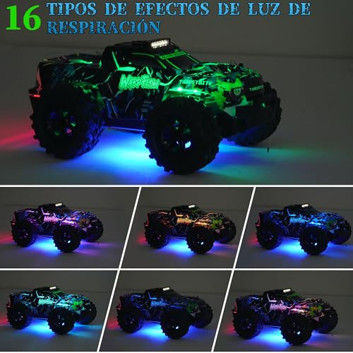 Uno degli aspetti più originali e accattivanti di questo modello è senza dubbio il comparto "effetti speciali". La macchina è equipaggiata con un sistema di luci a LED posizionate sul tetto, sotto il telaio e nella parte posteriore. Queste luci non sono statiche, ma offrono diverse modalità dinamiche multicolore, con effetti pulsati, stroboscopici e sfumati che creano uno spettacolo visivo notevole, soprattutto al buio.