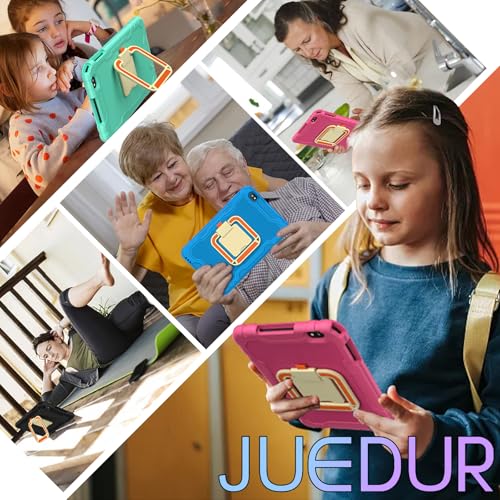 Appena aperta la confezione del JUEDUR R500, la prima cosa che salta all'occhio è la sua vocazione "kids-friendly". Il tablet è infatti avvolto in una spessa e colorata custodia protettiva in materiale EVA, pensata per resistere a urti, cadute e a tutto ciò che la fantasia di un bambino può scatenare. Questa cover non è solo un guscio protettivo, ma integra anche un pratico stand girevole a 360°, perfetto per guardare cartoni animati o per le videochiamate con i nonni senza dover tenere il dispositivo in mano. Le dimensioni sono generose, con un display da 10.1 pollici, ma il peso complessivo rimane gestibile anche per le mani più piccole.