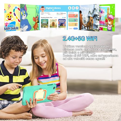 Parliamo un po' di numeri, perché anche in un tablet per bambini le prestazioni contano. Il cuore pulsante di questo dispositivo è un processore Octa-Core da 2.0 GHz, che, abbinato al sistema operativo Android 14, garantisce una buona fluidità nell'utilizzo. Questo significa meno attese frustranti per i piccoli utenti e un'esperienza generale più piacevole. La memoria RAM è un punto forte: si parla di ben 22GB, anche se è importante specificare che si tratta di 6GB di RAM fisica a cui se ne aggiungono 16GB di RAM virtuale. Questa soluzione permette di gestire più applicazioni contemporaneamente senza grossi rallentamenti, ideale quando si passa da un gioco a un'app educativa.