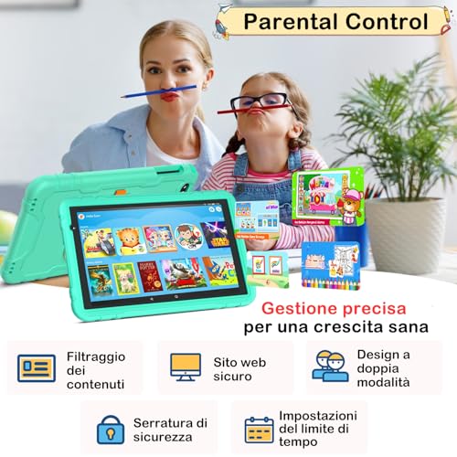 Uno degli aspetti più importanti per un genitore è la sicurezza. Questo tablet JUEDUR, grazie ad Android 14, offre strumenti di controllo parentale integrati ed efficaci. Attraverso app come Family Link di Google, è possibile gestire in modo granulare l'esperienza d'uso dei bambini. Si possono impostare limiti di tempo per l'utilizzo del dispositivo, approvare o bloccare le app che possono essere scaricate dal Play Store, e persino localizzare il tablet. Questo permette di creare un ambiente digitale sicuro e su misura per l'età del bambino, promuovendo un uso consapevole della tecnologia.