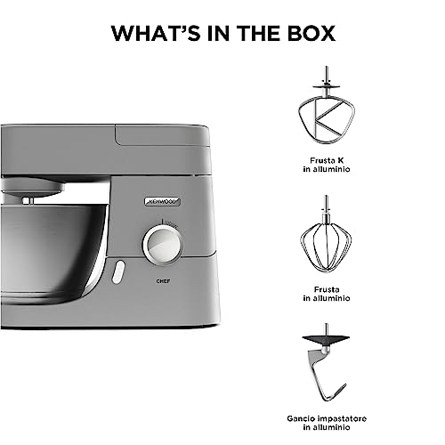 Sotto la scocca batte un motore da 1000 Watt a controllo elettronico. Questa potenza, unita al classico movimento planetario Kenwood, assicura che ogni ingrediente venga raccolto e amalgamato alla perfezione, dal centro ai bordi della ciotola. Non importa se stai montando a neve un singolo albume o impastando la base per più teglie di pizza, la macchina adatta in modo intelligente la potenza necessaria, evitando sprechi di energia.