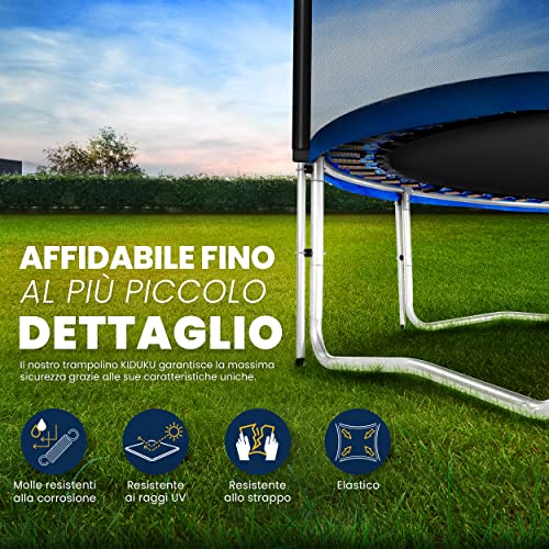 Il trampolino KIDUKU® si è rivelato un prodotto eccellente, con un rapporto qualità-prezzo davvero notevole. La sua forza risiede nella completezza del set, che fornisce tutto il necessario per un'installazione sicura e immediata. La qualità dei materiali, dalla struttura in acciaio galvanizzato alle imbottiture di protezione, è più che adeguata per un uso domestico intenso. L'attenzione ai dettagli per la sicurezza, come la rete a maglia fitta, la copertura delle molle ben spessa e gli ancoraggi a terra, lo rendono una scelta rassicurante per qualsiasi famiglia. Se state cercando un trampolino per far divertire i vostri figli in giardino in totale sicurezza, il KIDUKU® è senza dubbio una delle opzioni più valide e complete attualmente sul mercato.