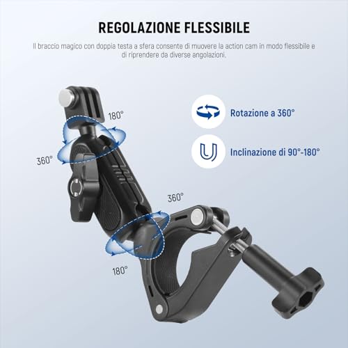 - Supporto per manubrio e ventosa: perfetti per montare la action cam su bici, moto o all'interno/esterno di un'auto, per inquadrature dinamiche.