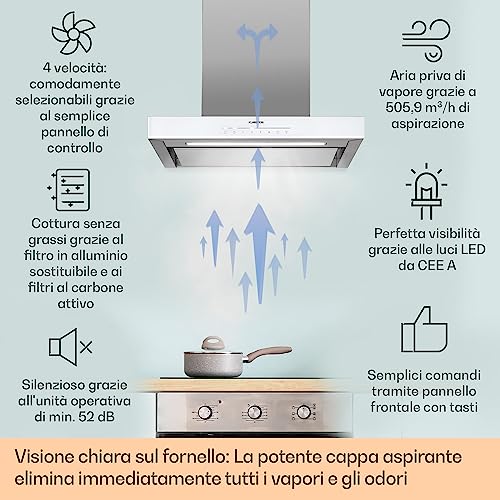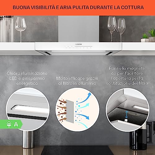 La scelta della cappa aspirante giusta è fondamentale per mantenere l'ambiente della cucina pulito, salubre e privo di odori sgradevoli. Oggi prendiamo in esame la Klarstein Cappa Aspirante da 60 cm, un modello a incasso che si propone come soluzione ideale per chi cerca un elettrodomestico performante senza rinunciare all'estetica. Con il suo design pulito e i comandi touch, si integra perfettamente nelle cucine moderne, promettendo di eliminare fumi e vapori in modo efficace e silenzioso.