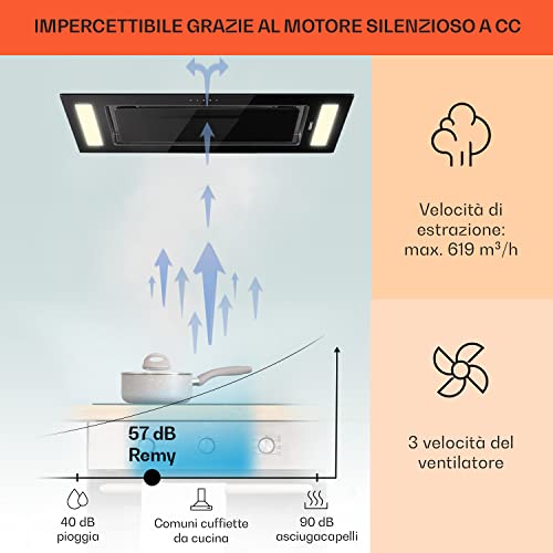 La prima cosa che colpisce della Klarstein Remy è senza dubbio il suo design. Pensata per essere la protagonista sopra un'isola di cottura, si presenta con linee pulite e moderne, disponibili in diverse finiture come nero, bianco e argento, per adattarsi a qualsiasi stile di cucina. La versione "Brilliant Edition" aggiunge un tocco di eleganza in più con i suoi dettagli in vetro. Ma non è solo bella da vedere: la sua vera forza sta nella versatilità di installazione. Può essere montata a soffitto, diventando un vero e proprio elemento d'arredo, oppure integrata a incasso o sottopensile, per una soluzione più discreta ma altrettanto funzionale.