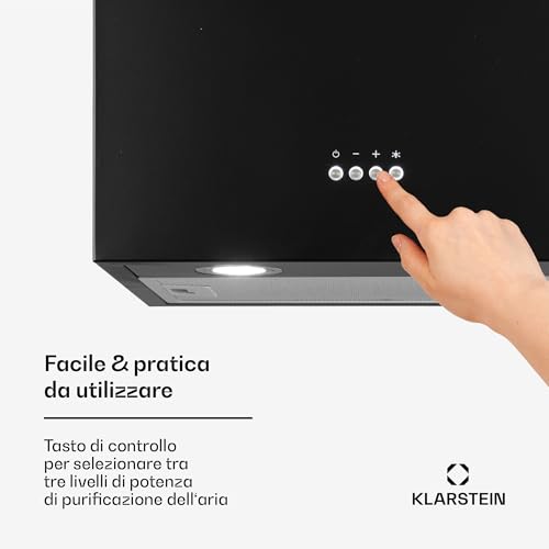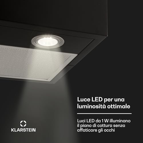 Ma veniamo al sodo: come si comporta nell'uso di tutti i giorni? La Klarstein Structura è equipaggiata con un motore in grado di garantire un ricambio d'aria massimo di 641 m³/h. Questo valore la colloca in una fascia di potenza medio-alta, adatta a gestire senza problemi i vapori e gli odori prodotti durante le cotture più impegnative, come fritture o grigliate. Che tu stia preparando un semplice sugo o un banchetto per amici, questa cappa farà il suo dovere egregiamente.