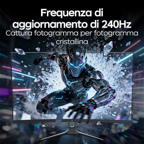 Il supporto per AMD FreeSync Premium e la compatibilità con NVIDIA G-Sync garantiscono l'eliminazione di tearing e stuttering, sincronizzando il refresh rate del monitor con i fotogrammi prodotti dalla GPU. Il risultato è un gameplay liscio e privo di artefatti visivi. L'input lag è molto basso, a livello dei monitor di marchi più blasonati, assicurando una risposta immediata ai comandi. Il monitor include anche alcune funzioni "gaming" tramite il menu OSD (On-Screen Display), come un mirino virtuale, un contatore di FPS e un timer.