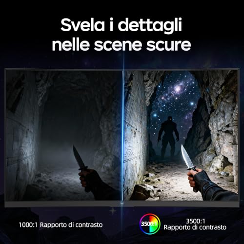 La resa cromatica è un altro punto di forza. Il monitor copre circa il 99% dello spazio colore sRGB e oltre il 93% del DCI-P3, offrendo colori vividi e vibranti, adatti non solo al gaming ma anche alla fruizione di contenuti multimediali. La luminosità massima si attesta intorno ai 350 cd/m², adeguata per la maggior parte degli ambienti interni, e il rapporto di contrasto è quello standard per un pannello IPS, circa 1000:1. Sebbene sia presente il supporto all'HDR10, le prestazioni in questa modalità sono limitate dalla luminosità di picco e dall'assenza di local dimming, risultando più un "extra" che una vera feature di punta. Per un'esperienza HDR autentica, è necessario rivolgersi a prodotti di fascia decisamente superiore.