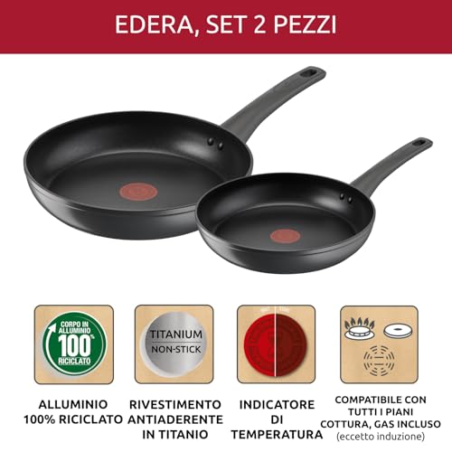 Il set Lagostina Edera si presenta con due padelle dalle dimensioni più comuni e versatili in cucina: 24 e 28 cm di diametro. Questa coppia è ideale per coprire la maggior parte delle necessità quotidiane, dalla cottura di un singolo uovo al salto di verdure per tutta la famiglia. L'impatto visivo è piacevole, con un design semplice ma curato, tipico del marchio Lagostina. I manici in bachelite offrono una presa comoda e sicura, un dettaglio non da poco quando si maneggiano padelle calde.