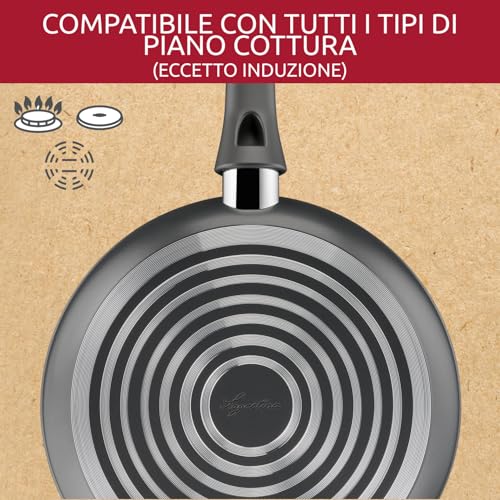 Il set di padelle Lagostina Edera rappresenta un'ottima soluzione per chi cerca un prodotto affidabile, facile da usare e con un occhio di riguardo per l'ambiente. La combinazione del rivestimento in titanio e della tecnologia Thermo-Signal offre un'esperienza di cottura quasi a prova di errore, ideale per la cucina di tutti i giorni. La scelta di utilizzare alluminio riciclato è un plus non indifferente. Il principale contro è la mancata compatibilità con l'induzione, che ne limita il pubblico. Nel complesso, è un set dal buon rapporto qualità-prezzo, consigliato a chi cucina su fornelli tradizionali e desidera un aiuto tecnologico per ottenere sempre risultati perfetti.