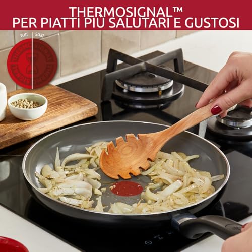 Ma a cosa serve esattamente? Questa tecnologia non è un semplice gadget. Cucinare alla giusta temperatura è fondamentale per diversi motivi. Innanzitutto, permette di sigillare immediatamente i succhi degli alimenti, come nel caso di carne o pesce, ottenendo una crosticina esterna perfetta e un interno morbido e succoso. Inoltre, evita il surriscaldamento dell'utensile a vuoto, un'abitudine che a lungo andare può danneggiare il rivestimento antiaderente e comprometterne le prestazioni. Il Thermo-Signal, quindi, non solo aiuta a ottenere risultati di cottura migliori, ma contribuisce anche a preservare la padella nel tempo.