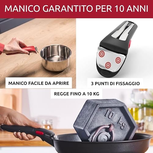 - Il set include un solo manico, che potrebbe essere limitante per cotture complesse