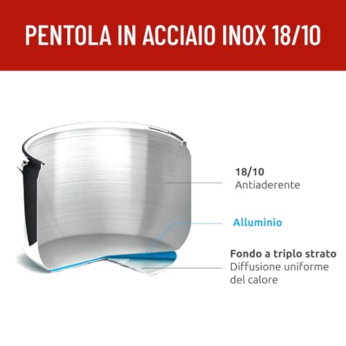 Ma veniamo al sodo. Cosa rende questa pentola speciale? Innanzitutto il fondo Irradial Plus a triplo strato (acciaio-alluminio-acciaio). Questa tecnologia non è solo un nome altisonante: serve a distribuire il calore in modo perfettamente uniforme su tutta la superficie, evitando che i cibi si attacchino e garantendo una cottura omogenea. Un bel vantaggio, soprattutto quando si preparano arrosti o risotti. Inoltre, è compatibile con tutti i piani cottura, inclusa l'induzione, una caratteristica ormai indispensabile nelle cucine moderne.
