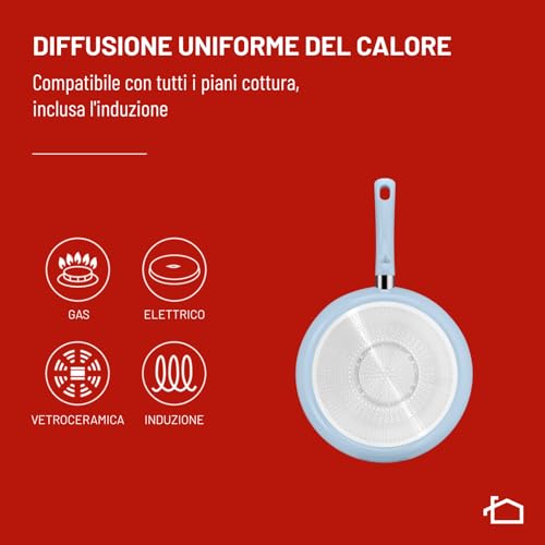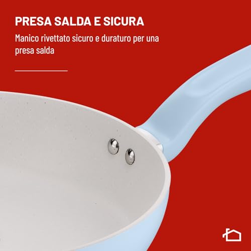 Ma come si comportano queste padelle nella cucina di tutti i giorni? La risposta è decisamente positiva. La leggerezza dell'alluminio, unita al manico rivettato ergonomico, garantisce una presa salda e sicura, rendendo agevole anche saltare la pasta. I manici, coordinati nel colore con il corpo padella, aggiungono un ulteriore tocco di stile. La compatibilità è totale: le padelle Salvia e Brezza possono essere utilizzate su tutti i piani cottura, inclusa l'induzione, grazie al loro fondo speciale.
